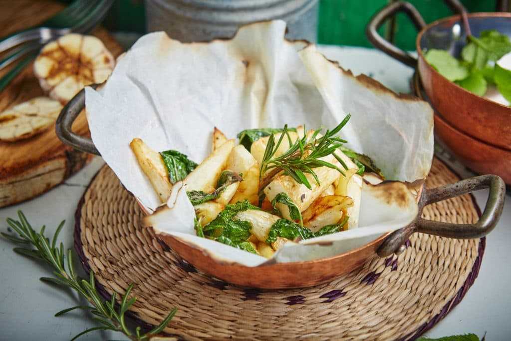 Из тушеного корня сельдерея получается витаминное пюре. Как и все овощи, корень сельдерея прекрасно подходит для жарки, тушения, варки на пару или запекания. Зеленые же листья сельдерея являются универсальной приправой для первых и вторых блюд.