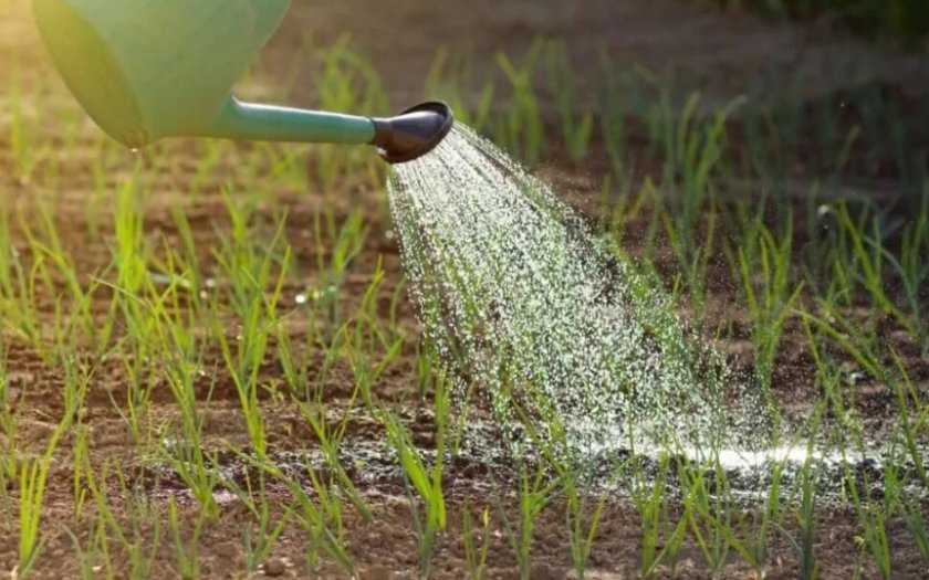В осенний период важно сохранять высокий уровень влажности почвы. При необходимости грунт нужно орошать до и после посева лука вплоть до наступления заморозков
