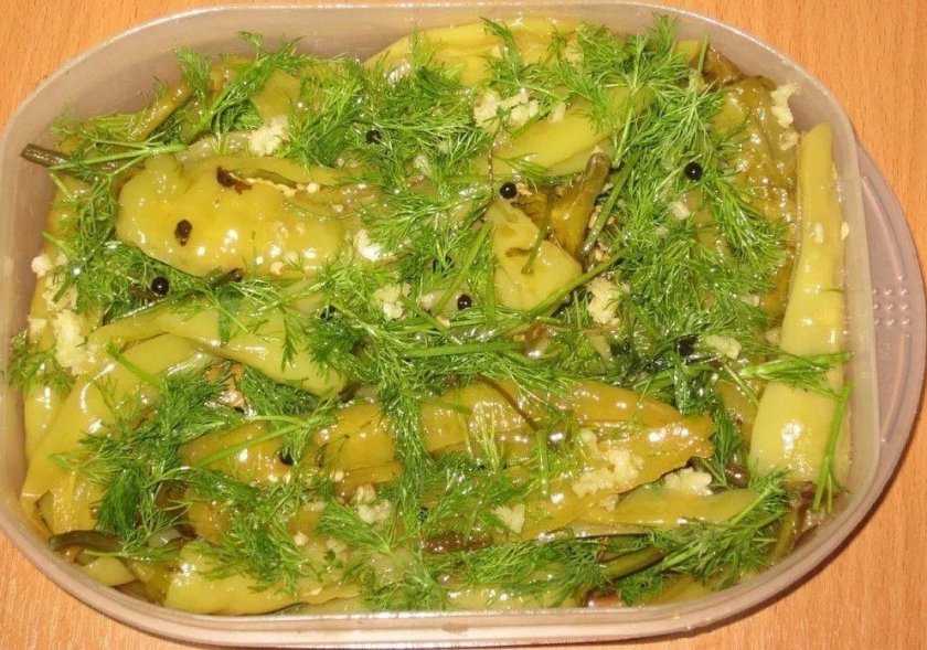 - Каждый плод натереть солью, выложить по четыре стручка один в другой и заполнить ими ёмкость для засолки.
