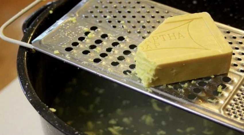 - Растворить стружку в 1 л тёплой воды, хорошо перемешать.