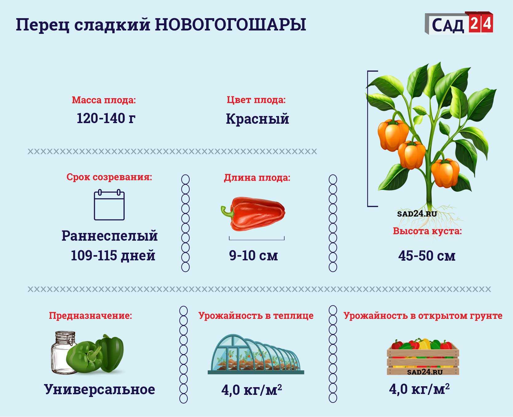Плоды перца Новогогошары характеризуются следующими признаками: