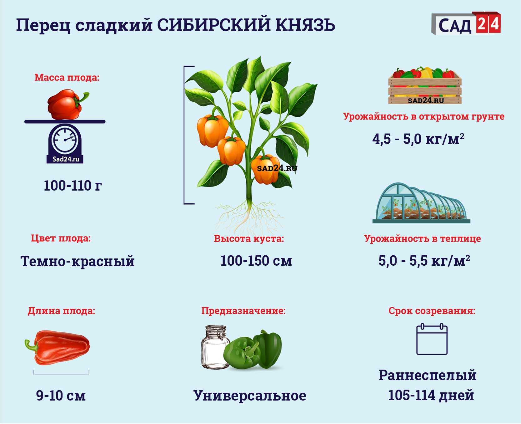 Сладкий перец Сибирский князь не отличается высокой требовательностью к уходу и условиям выращивания, поэтому подойдет как для огородников – любителей, так и для профессионалов.