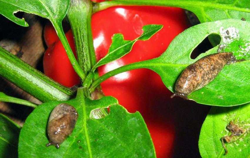 По характеру повреждений на листьях (дырочки) и следам слизи рядом с растениями вы поймете, что перцу угрожает опасность.