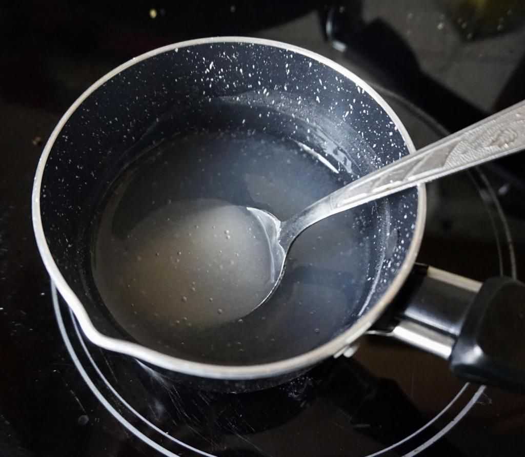 - Кипятим воду. Для работы потребуется: кипяток — 350 мл, холодная вода — 2 ст.л.