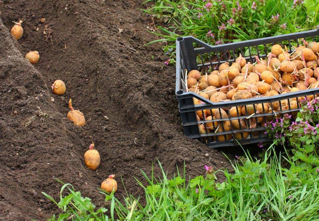 Второй способ посадки – в неглубокие (до 6 см глубиной) канавы и присыпание грунтом до высоты 20-25 см.