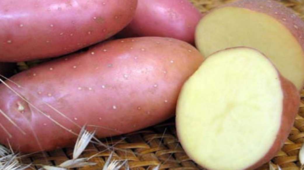 Имеют миниатюрные глазки. Кожура плодов розовая. Мякоть имеет светло-янтарный оттенок. Масса одного плода варьируется в пределах 105-145 гр. Содержание крахмала достигает 11-15%.