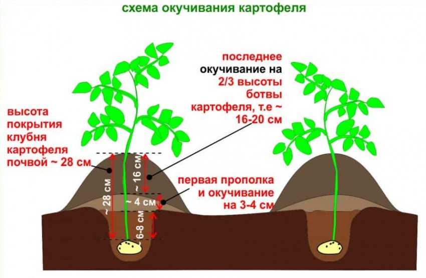 - первое окучивание осуществляют сразу после появления первых всходов. Подобная процедура позволяет защитить растение от возможных возвратных заморозков и от атак колорадских жуков;