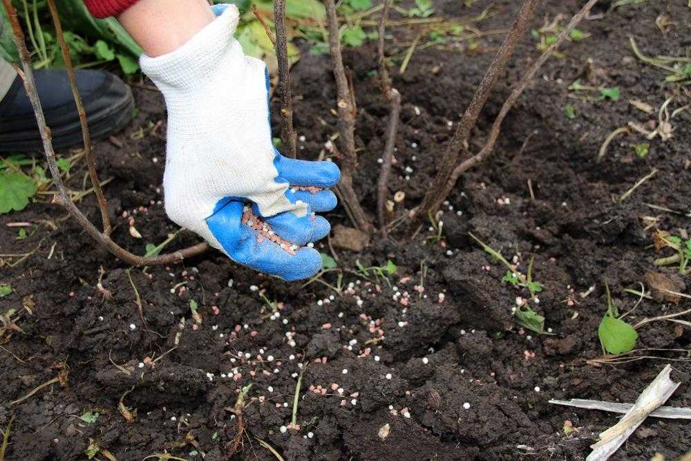 Во время цветения культуру поливают раствором карбамида (20 г на 10 л воды) или навозной жижей. В начале формирования ягод в грунт заделывают 1 кг золы или 70 г суперфосфата и 40 г сульфата калия. Под предзимнюю перекопку почвы вносят 400 г калийной селитры.