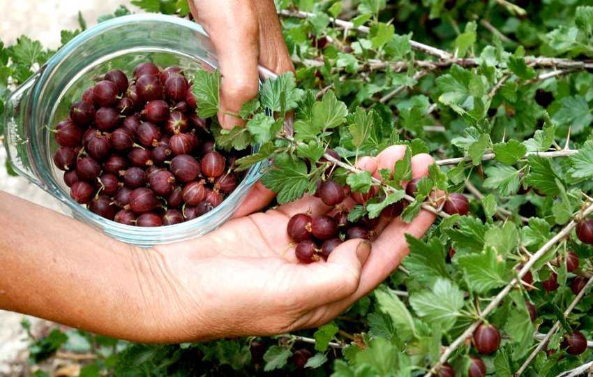 Для сбора плодов крыжовника используют специальное приспособление — гребенку. В этом случае продолжительность мероприятия сокращается в разы, но уменьшаются сроки хранения, с ягодами в тару попадают листья.