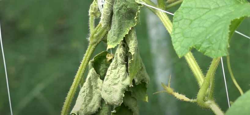 Эта болезнь очень коварна. Обычно она проявляется, когда заражение уже развилось в корнях и тканях огурца.