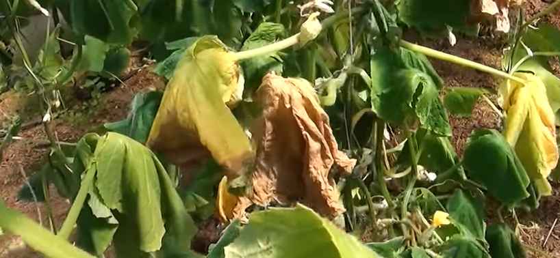 Это ещё один из признаков заражения. На более поздних стадиях симптомы болезни проявляются ещё сильнее. Плети теряют скорость роста и урожайность до 50 % от прежних показателей. При сильном заражении происходит отмирание больных тканей.