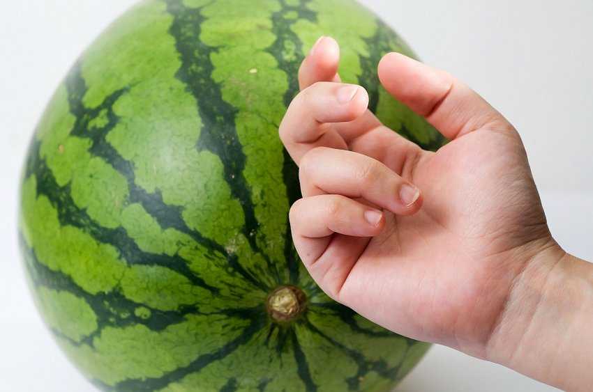 - Положить арбуз на руку и легко по нему постучать. Должна пойти вибрация, отдающая в руку, на которой лежит ягода.