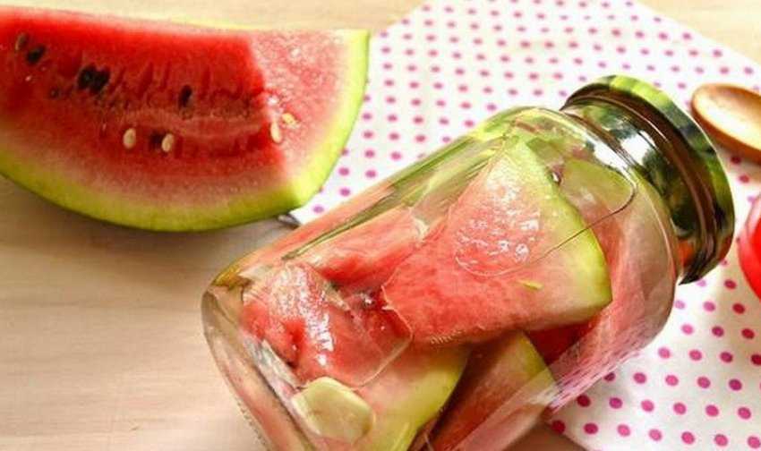 Мариновать можно не только мякоть, но и корки «полосатых ягод». Готовый продукт имеет интересный фруктово-овощной вкус. Он хорошо подходит для использования в качестве компонента сложных бутербродов, добавления в салаты и винегреты.
