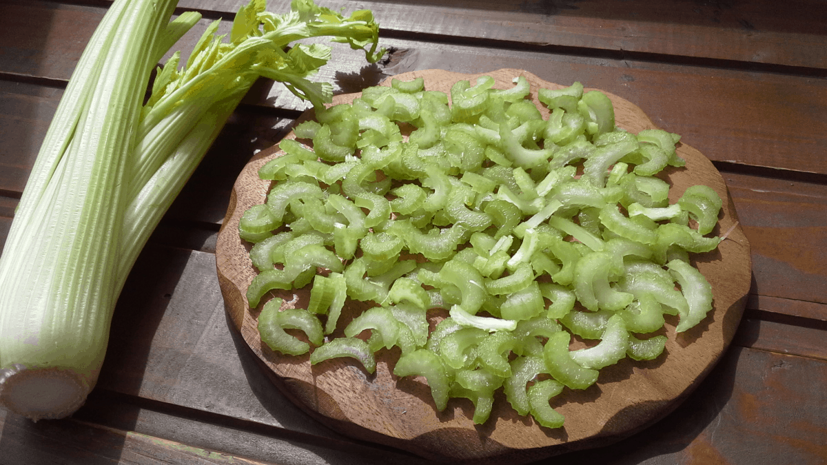При бланшировании продукт сначала опускают в кипяток на пару минут, потом быстро остужают. Такая процедура делает черешки мягче, убирает горечь и дезинфицирует, чтобы сельдерей было проще и безопаснее использовать в будущем.