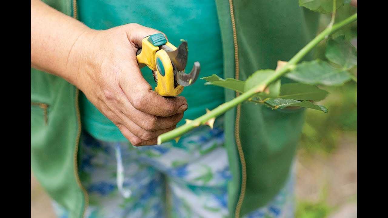Нижний косой срез нужно сделать под нижней почкой, срез должен быть косым и длинным. Срезать нужно острым ножом.