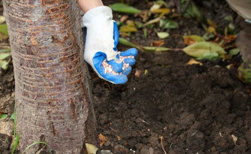 Осенняя подкормка помогает растениям усилить корневую систему и повысить её сопротивляемость морозам и различным заболеваниям. Удобрения вносят после сбора плодов, когда дерево ещё не ушло на покой и до заморозков есть минимум 2–4 недели. В этот период следует использовать только фосфорно-калийные удобрения. Концентрация препаратов будет зависеть от возраста дерева. Кроме промышленных смесей можно использовать как источник калия раствор древесной золы.