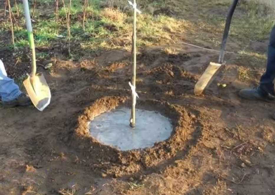 Весна мокрая и долго держится грязь? Объём поливной воды минимален — не более семилитрового ведра на деревце в момент посадки.