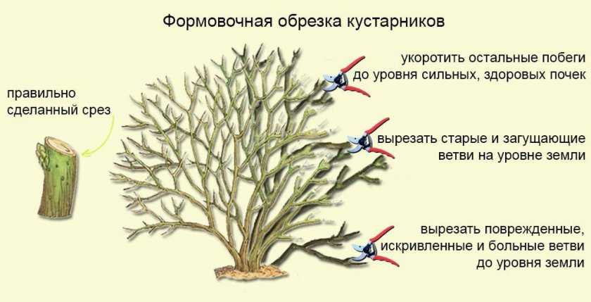 Делают это ежегодно, пока куст не достигнет желаемой густоты и формы. Взрослые растения подвергают формировочной обрезке только для исправления кроны после повреждения или для уменьшения ее размеров.