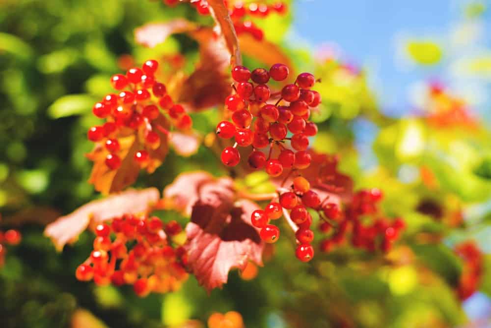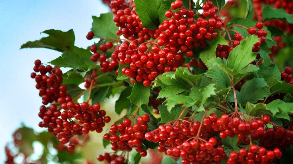 осенью глаз радуют тяжелые ярко-красные грозди ягод.