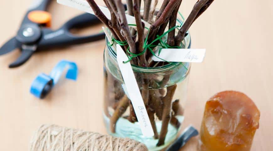 Если чубуки пришли по почте, после получения нужно обновить срезы, вымочить в холодной воде 1-2 дня, ополоснуть раствором пищевой соды.