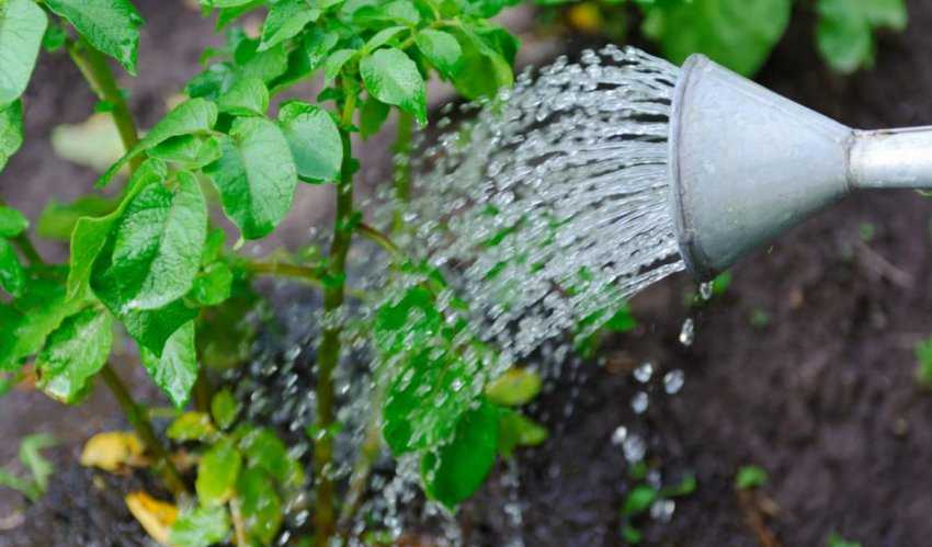 Правильный полив — один из самых главных факторов получения качественного урожая. В умеренном климате увлажняют картофель редко, раз в неделю. На юге или в стабильно жаркую погоду — когда почва станет сухой.