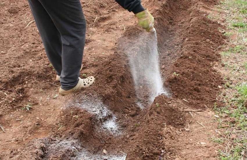 Осенью на участок вносят перегной или торф из расчета 1 ведро на 1 м 2 . Также добавляют минеральные удобрения: суперфосфат, сульфат калия и древесную золу. После внесения удобрений почву обеззараживают, перекапывают и убирают сорняки. Комки разбивать не нужно. Весной землю рыхлят и разравнивают граблями. Процедура облегчает доступ воды и воздуха к корням растения.